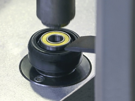 At Interroll solutions, the ball bearings delivered by LFD are pressed directly into the powerful rollers. The fit is precise down to a tenth of a millimetre. The production processes are safeguarded in such a manner that the bearings are always pressed in at exactly the same position. In this manner, a high degree of quality can be ensured.